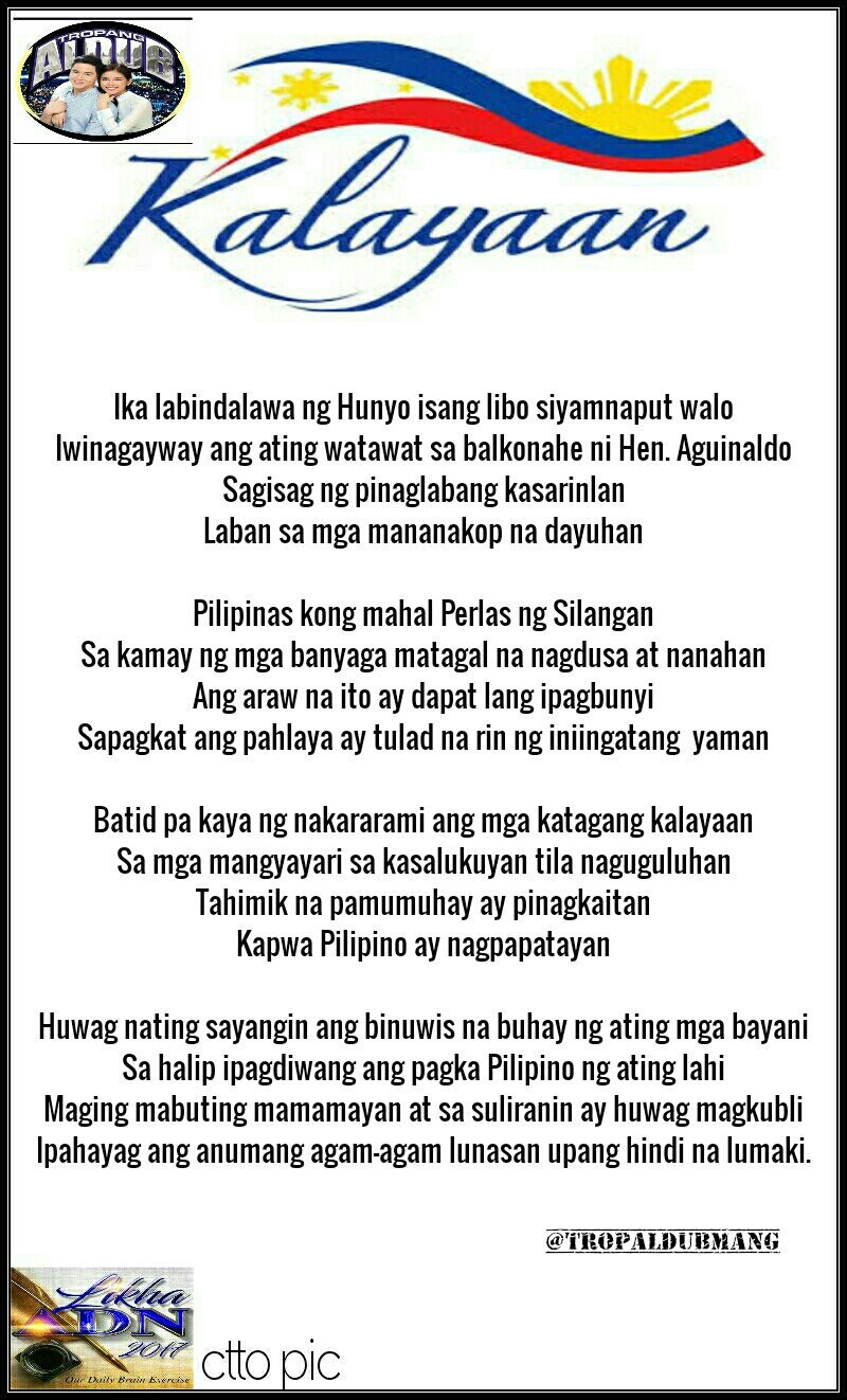 Ko nga ba tanungin nalang natin si. Sa sariling bayan ng dangal at puri. Tula tungkol sa pagiging mabuting mamamayang pilipino.